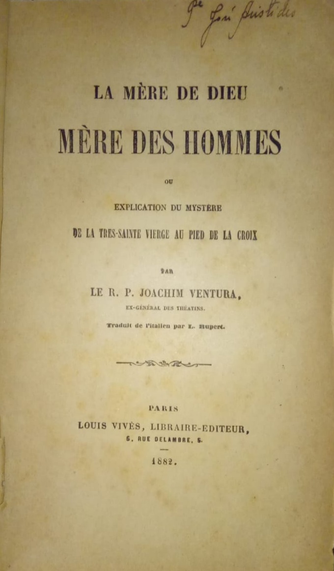 Introdução Publicado em 1891 pela Louis Vives, Libraire Éditeur, Marie, Mère de Dieu – Mère des Hommes, de R.P. Ventura, é uma obra de profunda devoção mariana que explora o papel singular da Virgem Maria no mistério da redenção. O livro, que faz parte das Oeuvres de R.P. Ventura, é…